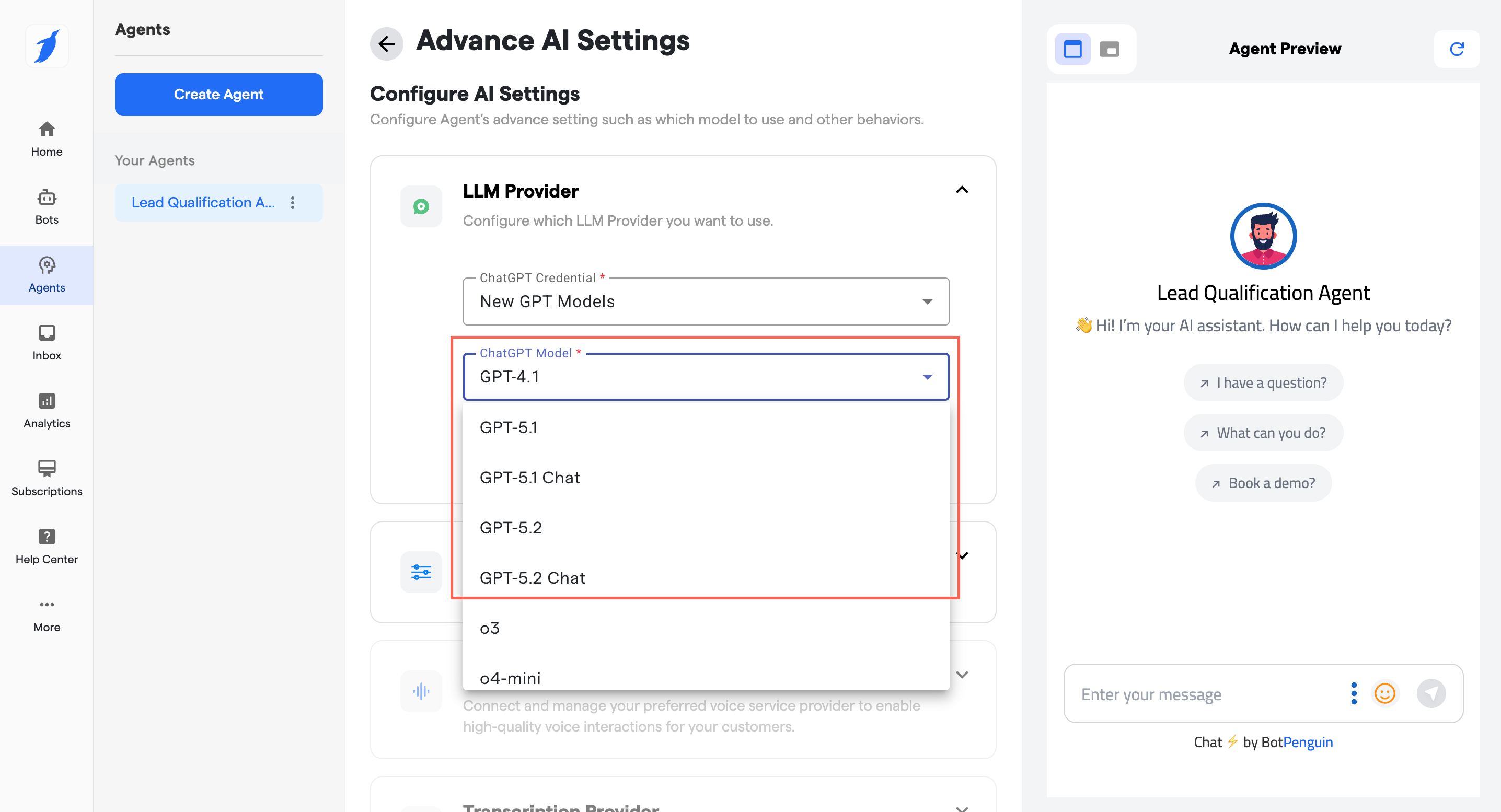 Your AI Agents just got an intelligence boost! We’ve added the latest ChatGPT models, including 5.1, 5.1 Chat, 5.2, and 5.2 Chat to deliver more accurate responses, better reasoning, and improved performance across conversations.